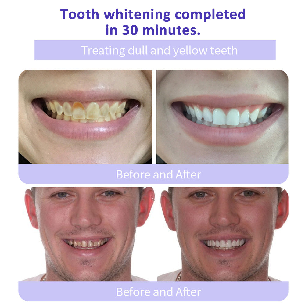 Tired of hiding your smile because of yellowish teeth? Skavix V36 Whitening Strips are here to change the game! Look at these amazing "before & after" shots-nohype, just real results.The purple -hued strips work their color -correcting magic, targeting those stubborn yellow tones to reveal a brighter, more confident smile. Whether it's coffee stains or daily discoloration holding you back, our strips deliver visible whitening in just 30 minutes.